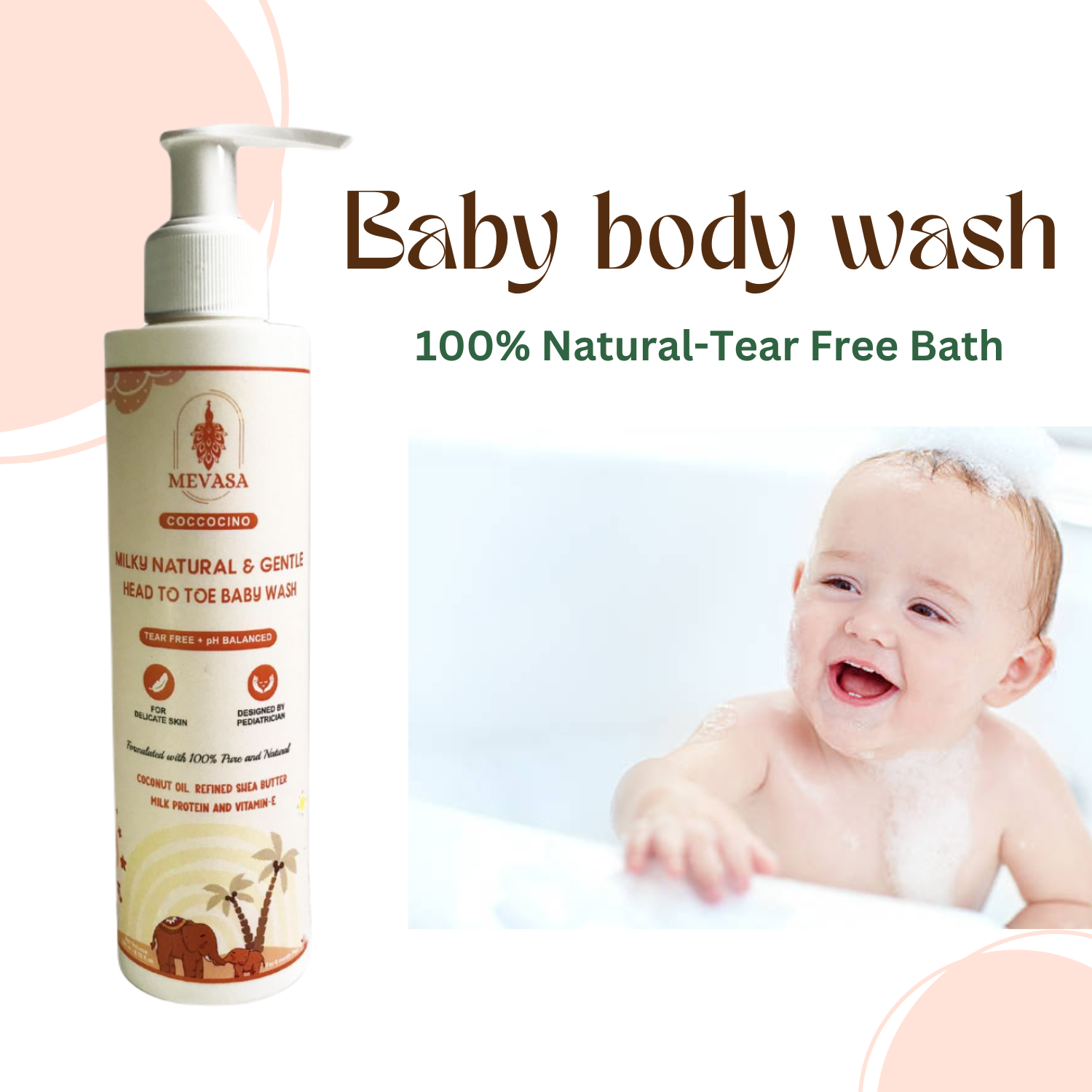 Baby Body Wash Crafted with 100% natural ingredients, free from harsh chemicals and toxins, ensuring your baby gets the best of nature’s care.